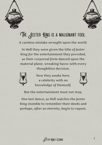 One last dance, as hell watches the jester king stumble to remember their deeds and perhaps, after an eternity of time, they may begin to repent