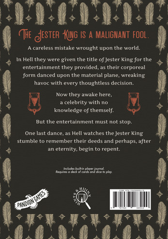 You, dear player, are not the Jester King. You are not playing as them, but watching them and documenting their journey. Write more of their story after each step, dice roll, and card flip. You may hate and despise them after you complete the game. They may not deserve any absolution.